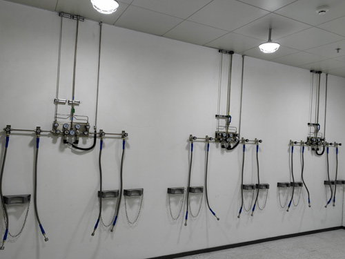 2.4N氫氣主任線主要應用OD3/8”(6.35mm)的pvc管網,0.5Mpa氣壓齷齪量能達8M3/半小時,完整滿足需要常見用氣使用需求,支線主要應用OD1/4”(6.35mm)的pvc管網。用不銹鋼焊接三通接頭分成支路來對環保設備開始供氧。